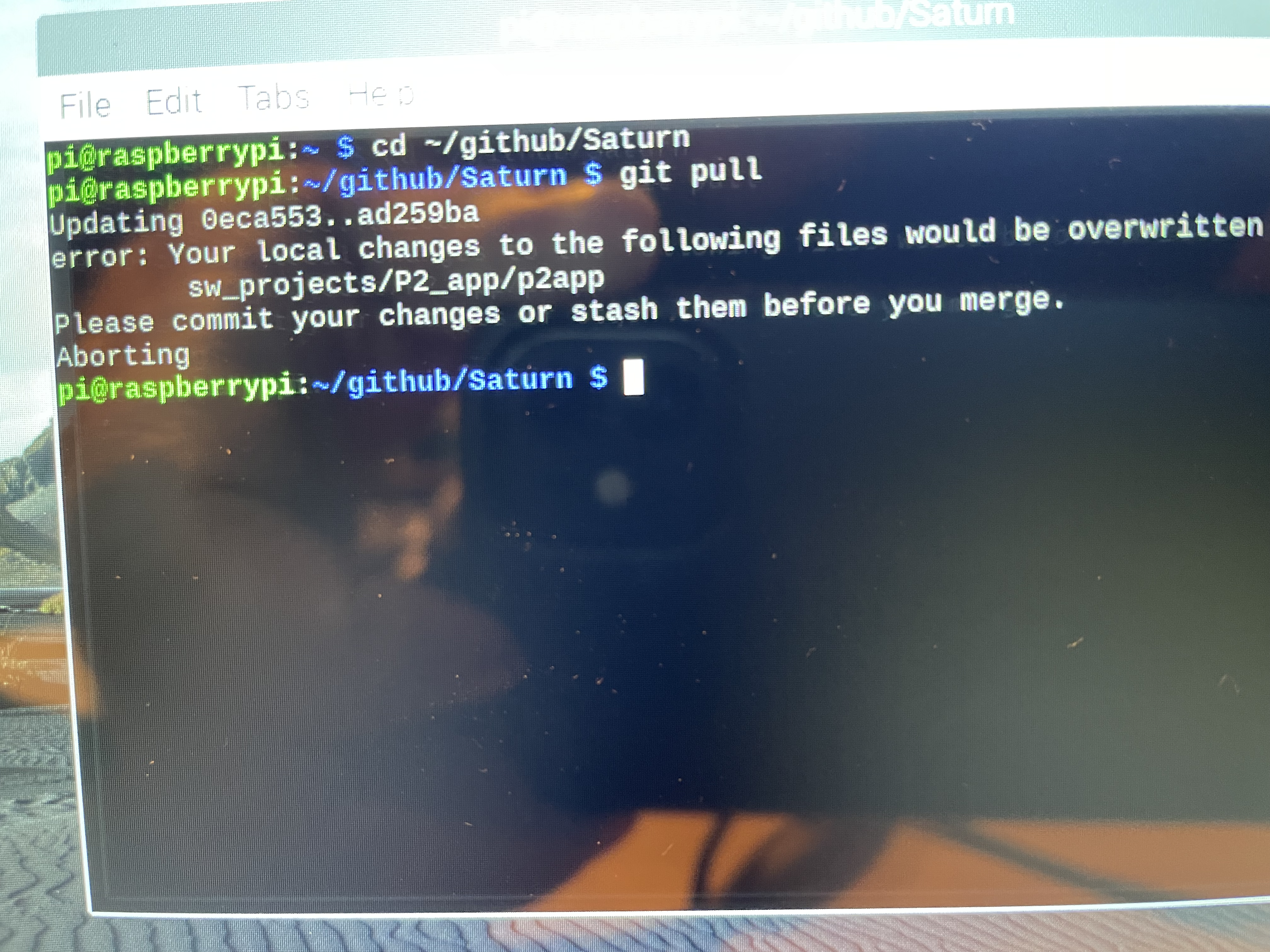 yesterday my piHPSDR update was succesfull, but git pull of Saturn FW/p2app failes due to this attached error. Any idea?